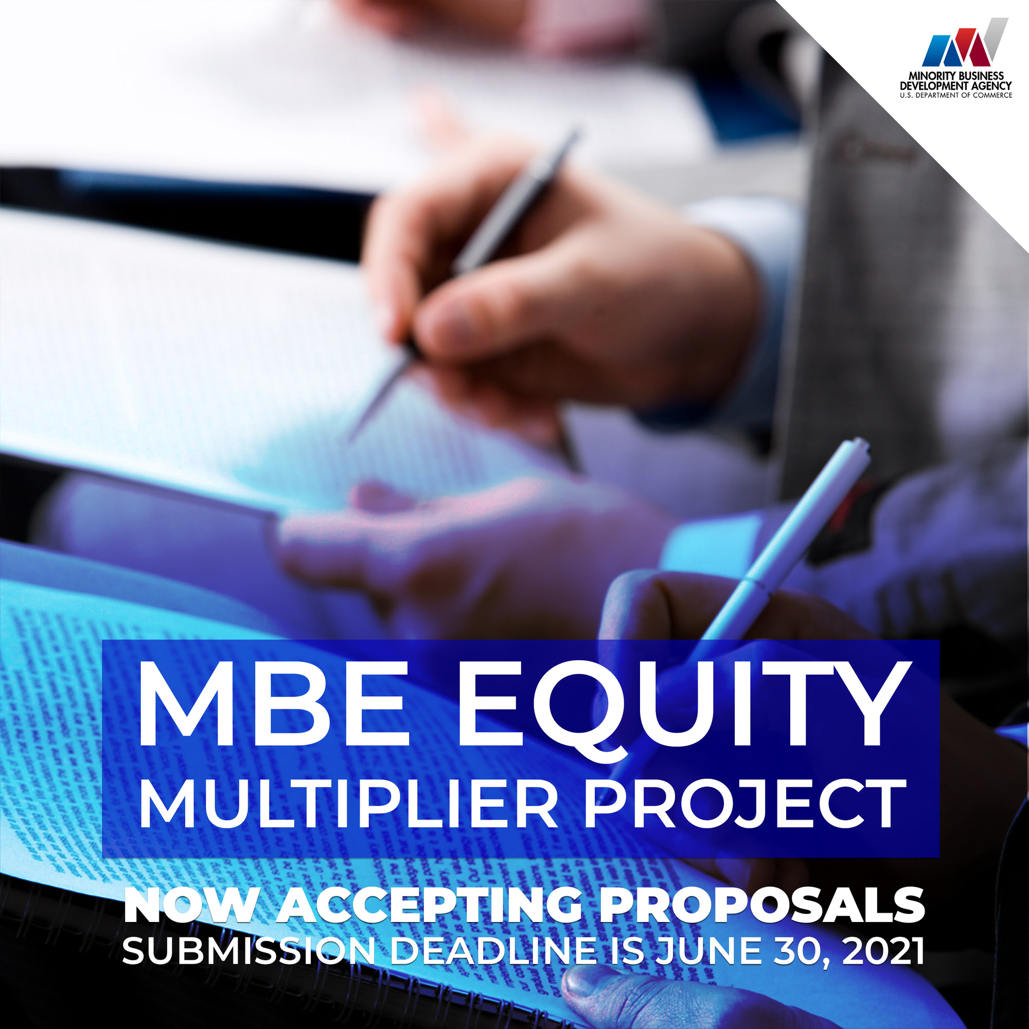 The Minority Business Development Agency is now accepting proposals for the MBDA Minority Business Enterprise (MBE) Equity Multiplier Project. We invite you to review the full announcement, learn more about eligibility, funding, and locations. To get started: